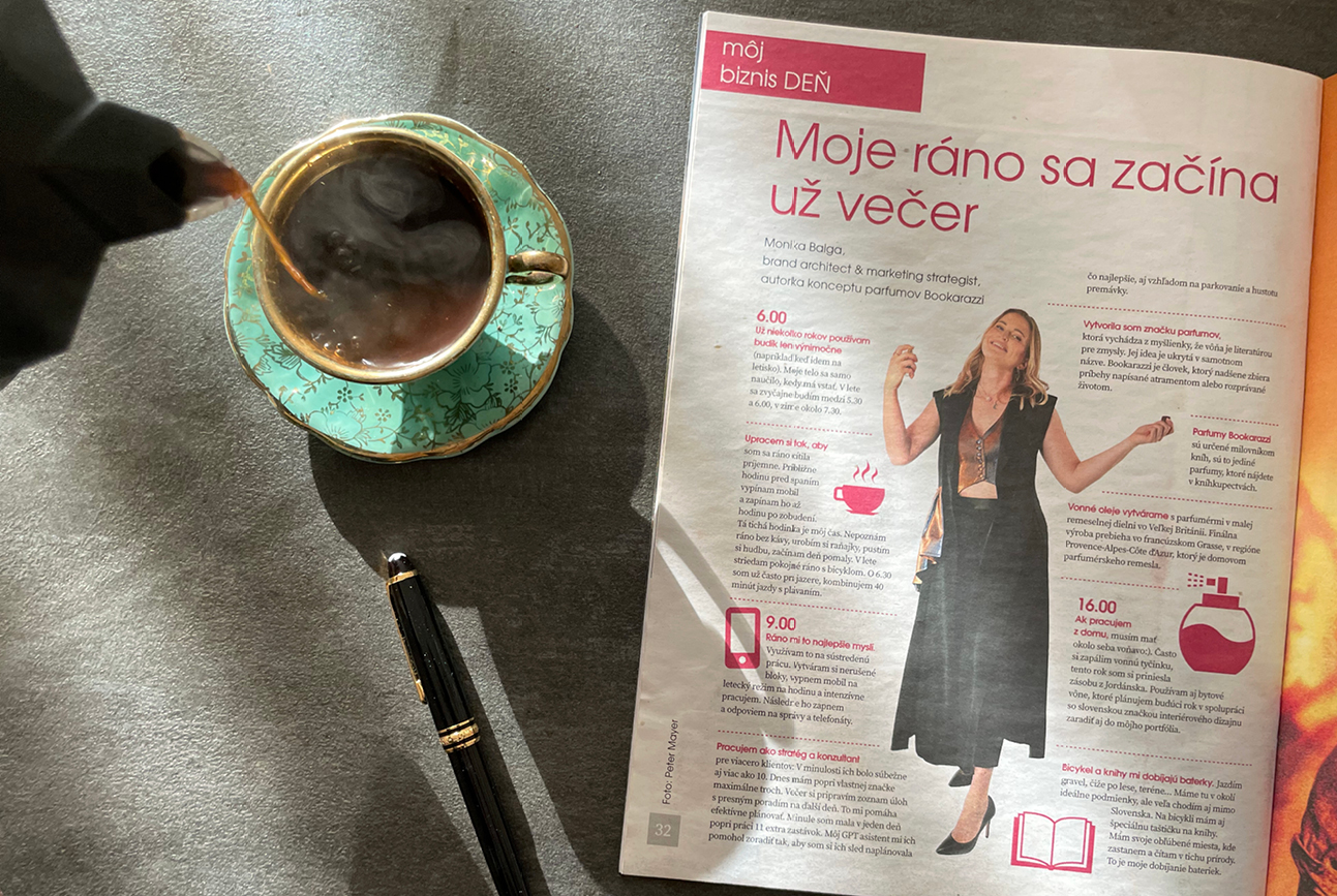 V rozhovore pre HN magazín v rubrike Môj biznis deň sa dozviete, ako vyzerá deň zakladateľky značky Bookarazzi, Moniky Balga. Od tichých rán bez mobilu až po budovanie značky, ktorá netradične prepája literatúru so svetom vôní.